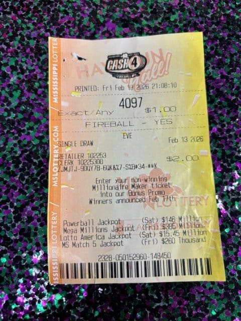 Every effort is made to ensure the accuracy of information contained on this website. This website, however, is not the final authority on winning numbers, prizes, games, or other information. Winning numbers are not official until validated by the Mississippi Lottery and its independent auditors. All winning tickets must be validated by the Mississippi Lottery before prizes will be paid.