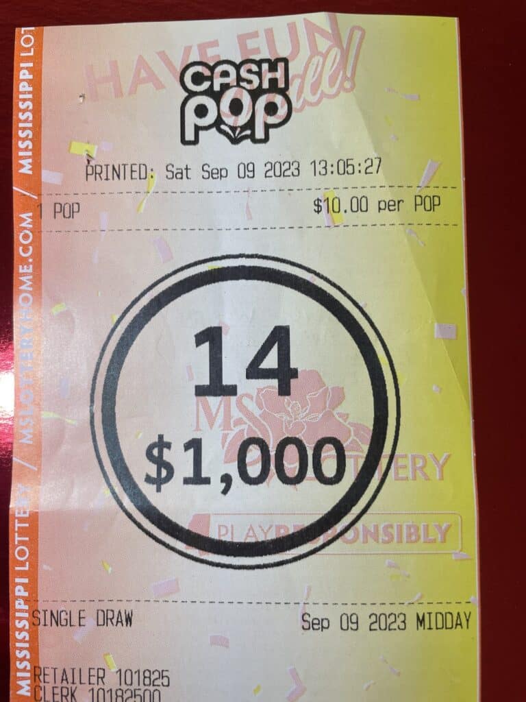 A Byram man won $1,000 on a Cash Pop from Shell Lake Cormorant in Lake Cormorant.
