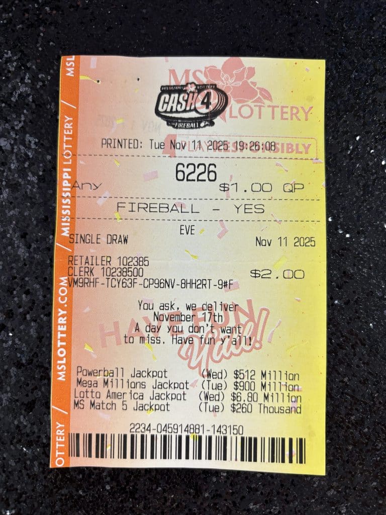 Every effort is made to ensure the accuracy of information contained on this website. This website, however, is not the final authority on winning numbers, prizes, games, or other information. Winning numbers are not official until validated by the Mississippi Lottery and its independent auditors. All winning tickets must be validated by the Mississippi Lottery before prizes will be paid.
