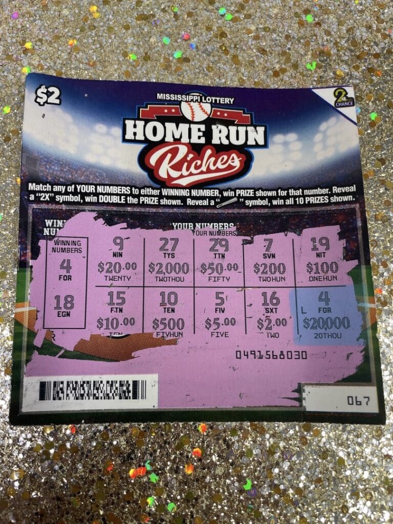 A Starkville player won $20,000 on a $2 scratch-off ticket from Texaco Meat Mart in Starkville.