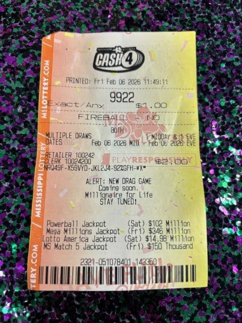 Every effort is made to ensure the accuracy of information contained on this website. This website, however, is not the final authority on winning numbers, prizes, games, or other information. Winning numbers are not official until validated by the Mississippi Lottery and its independent auditors. All winning tickets must be validated by the Mississippi Lottery before prizes will be paid.