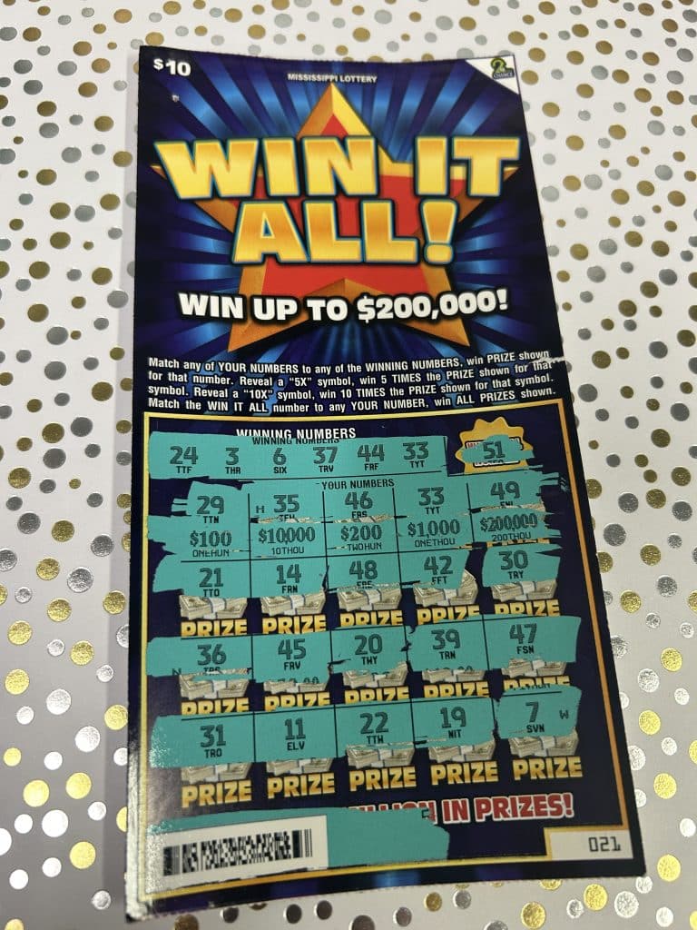A Theodore, Ala., man won $1,000 on a $10 scratch-off ticket from Miss Al Market in Moss Point.