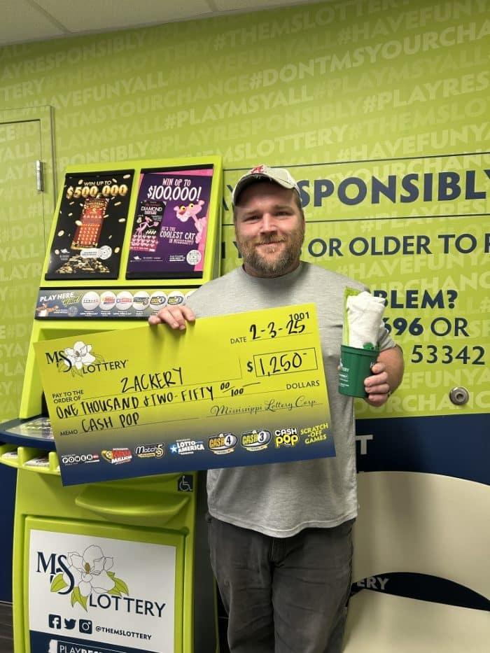 A Tupelo man won $1,250 on a Cash Pop ticket from V- Mart in Mooreville.