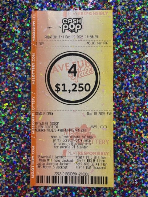 A Tupelo woman won $1,250 on a Cash Pop ticket from Sun Express in Tupelo.