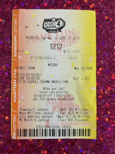 Every effort is made to ensure the accuracy of information contained on this website. This website, however, is not the final authority on winning numbers, prizes, games, or other information. Winning numbers are not official until validated by the Mississippi Lottery and its independent auditors. All winning tickets must be validated by the Mississippi Lottery before prizes will be paid.