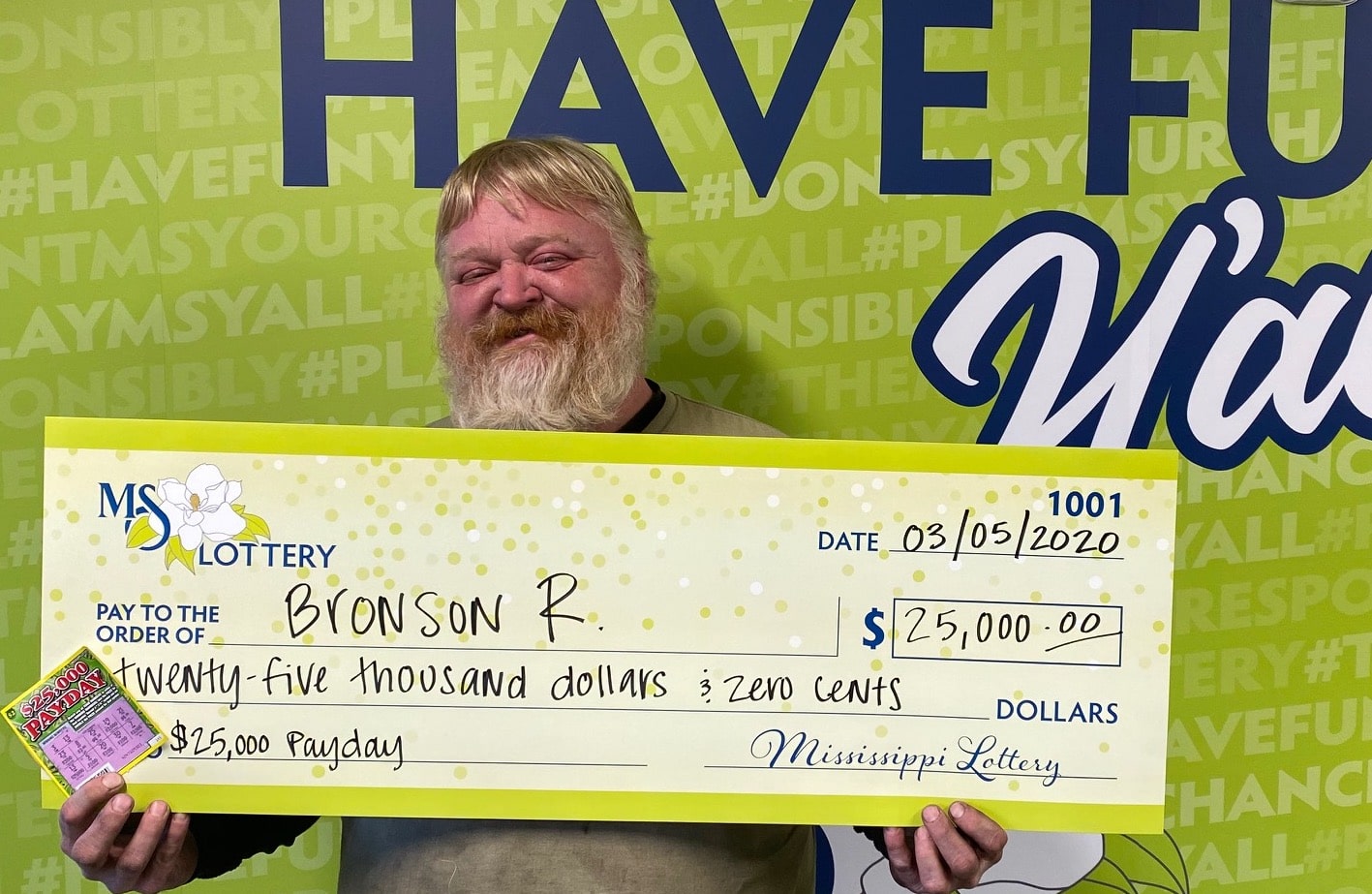 Bronson R. of Memphis won $25,000 on a $25,000 Payday scratch-off purchased from the Get Go located in Southhaven, MS.