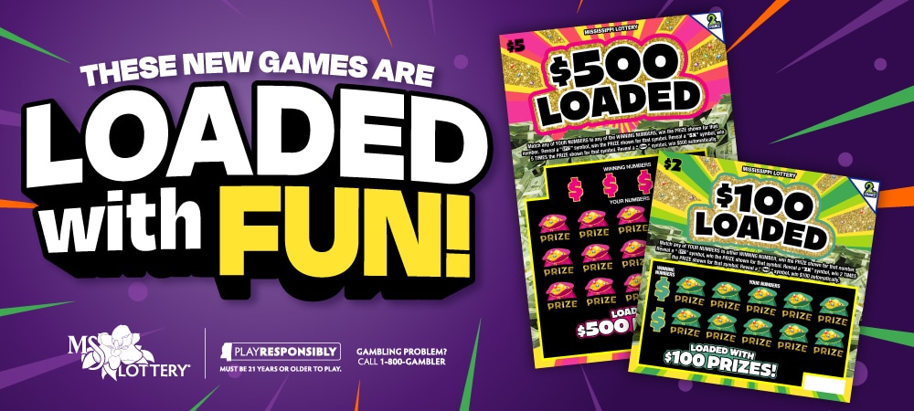 Powerball’s Estimated Jackpot a Whopping $700 Million JACKSON, MISS. – The Mississippi Lottery Corporation is kicking off Labor Day weekend with an early release of its September scratch-off games, The Loaded Family. Arriving in stores Friday, Aug. 29, ahead of the holiday, this lineup features tickets loaded with $100 and $500 prizes. $2 – $100 LoadedPacked with $100… Continue reading September Games Bring Loads of Fun with Loaded Family