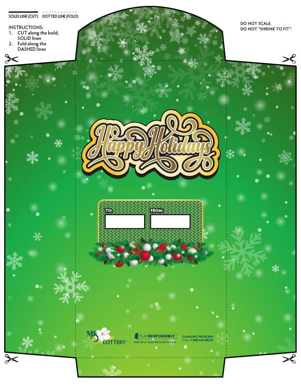 Use our free Scratch-off Sleeves to make your gift extra special! Simply click on one of the available patterns and print to your color printer. Be sure your printer settings are set to full size for an 8.5″x11″ sheet of paper. Once printed, cut along the designated edges, fold the wrap around the tickets and tape to seal.
