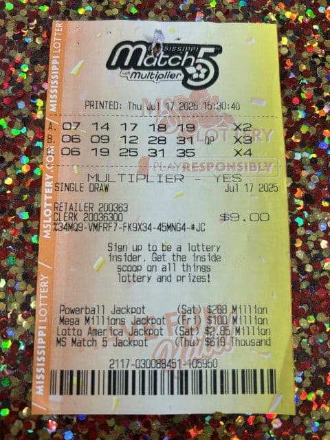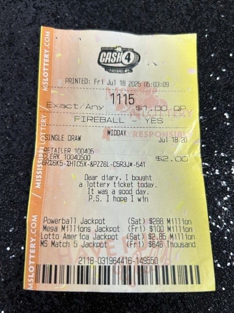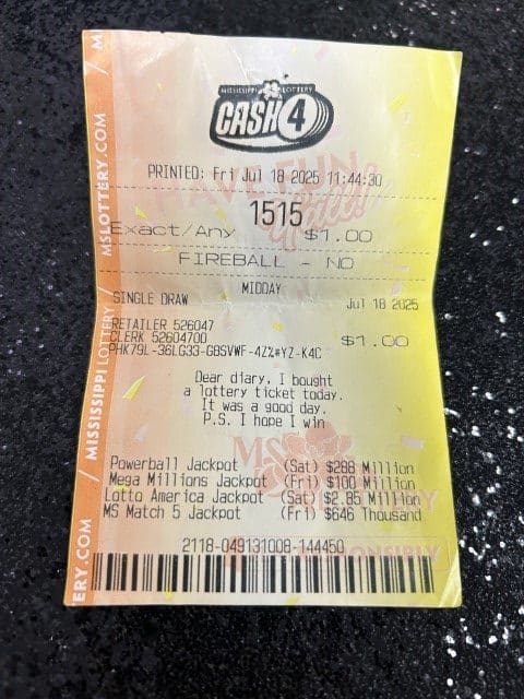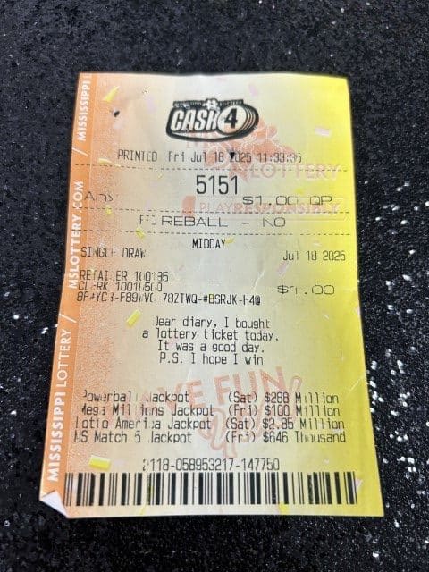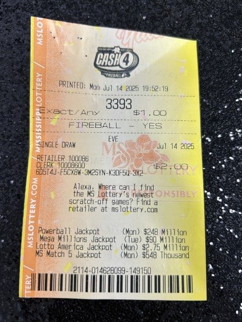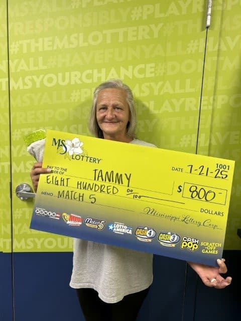 A Meridian player won $1,000 on a $20 scratch-off ticket from Jimmys Mini Mart in Toomsuba.
