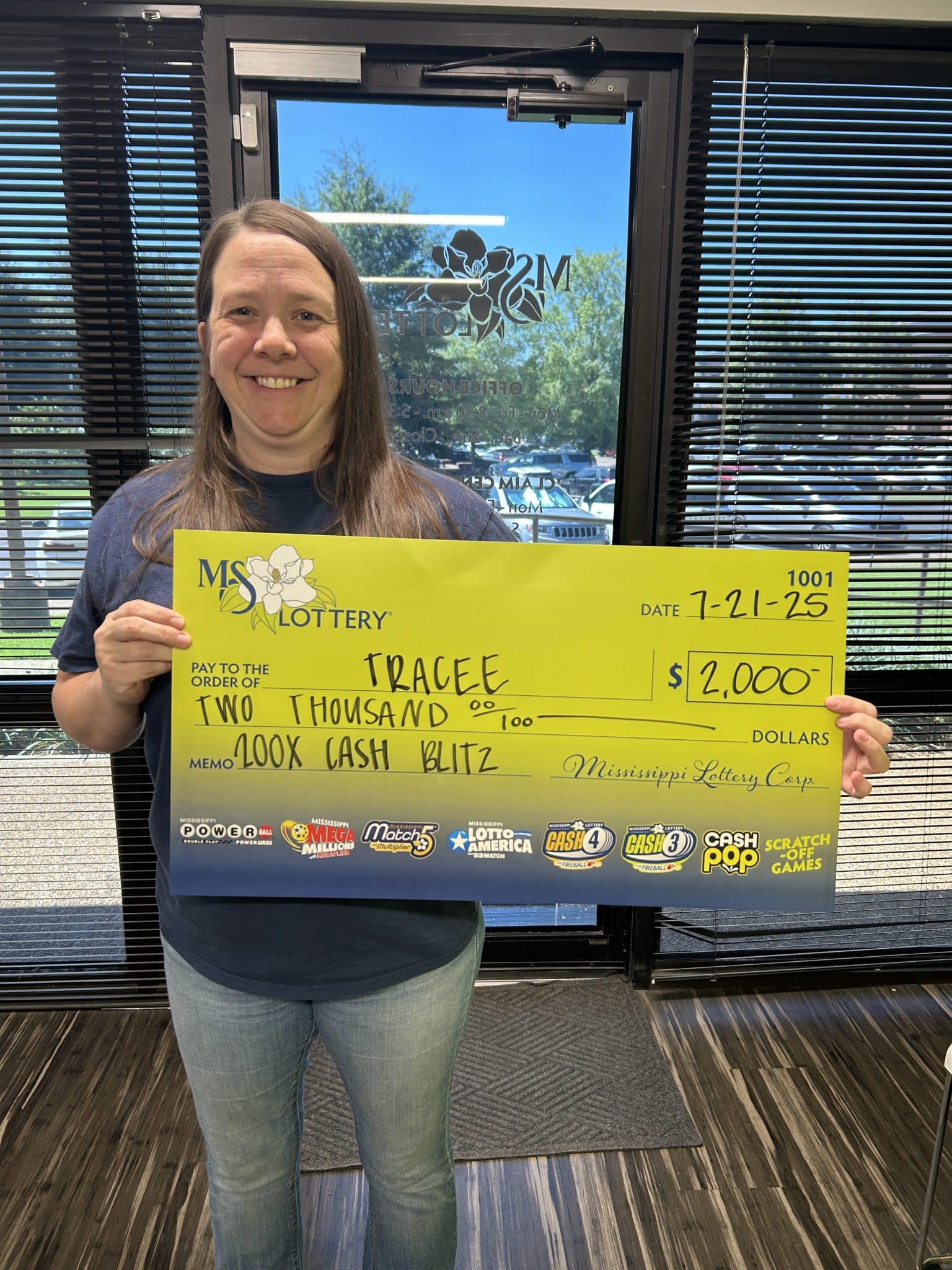 A Lucedale woman won $25,000 on a $2 scratch-off ticket from Ll Quick Mart in Lucedale.