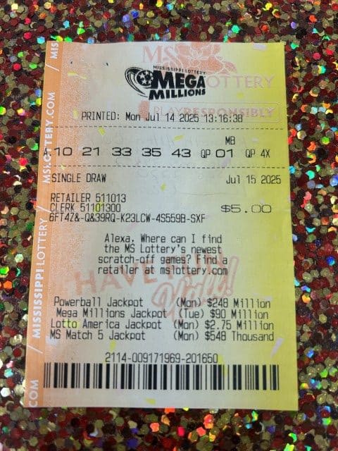 A Lucedale man won $800 on a Mega Millions ticket from Keith’s Superstore #86 in Moss Point.