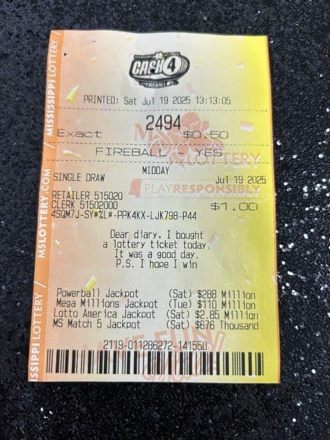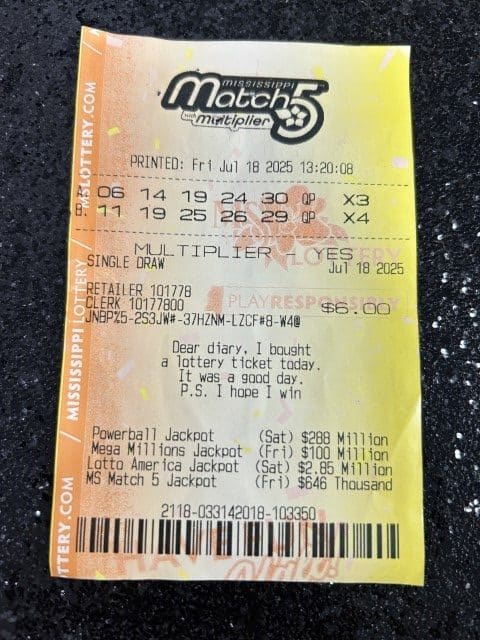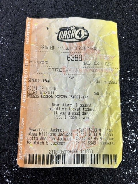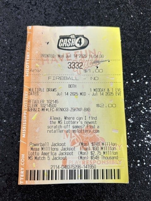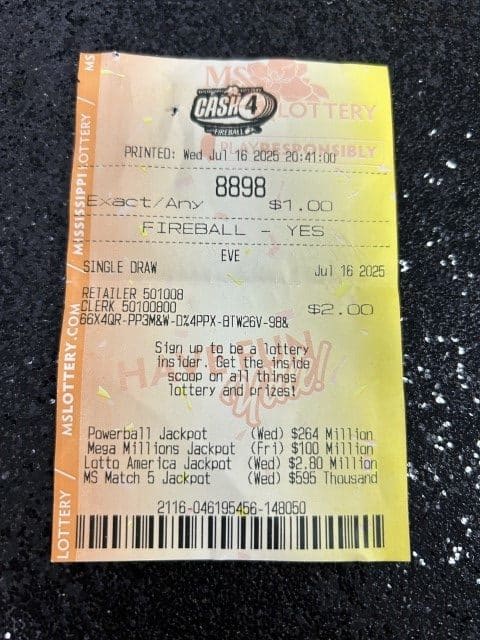A Starkville man won $25,000 on a $5 scratch-off ticket from Sprint Mart #4127 in Starkville.
