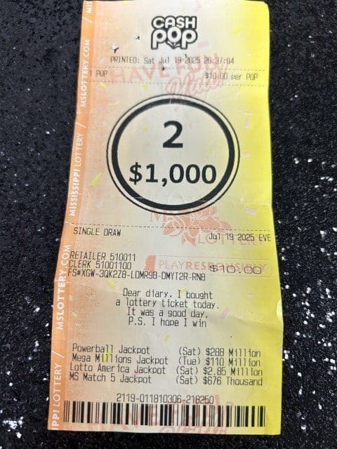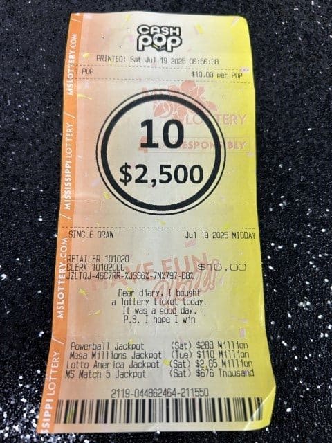 A Pearl man won $2,500 on a Cash Pop ticket from Southland Grocery & Gas in Jackson.