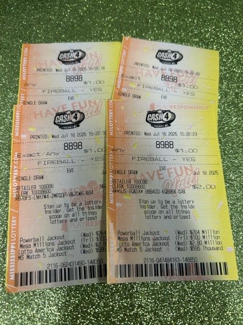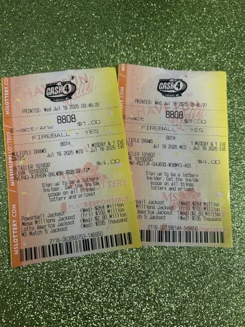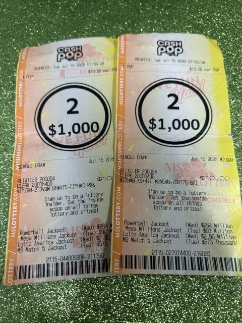 A Pearl man won $3,945 on two Cash 4 tickets from Blue Sky Store #607 in Brandon.