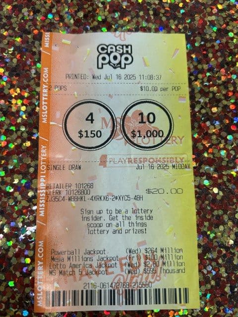 A Mooreville woman won $1,000 on a Cash Pop ticket from Corner Store in Tupelo.