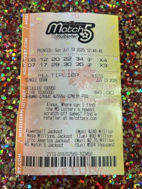 A Picayune man won $800 on a Match 5 ticket from Circle K Store #2723752 in Diamondhead.