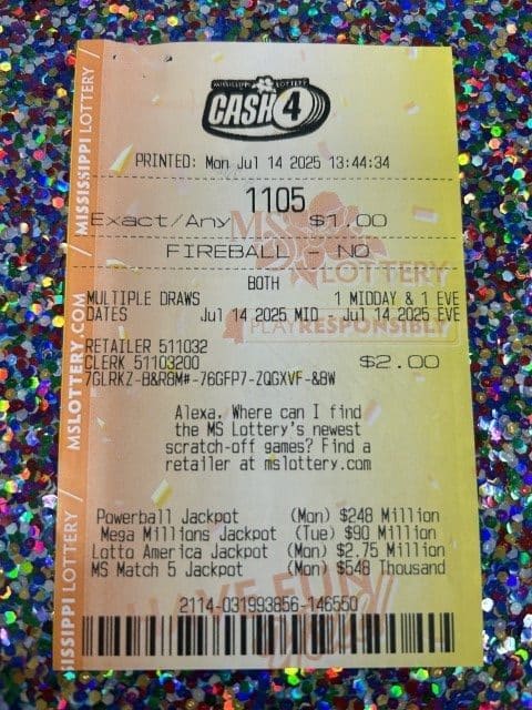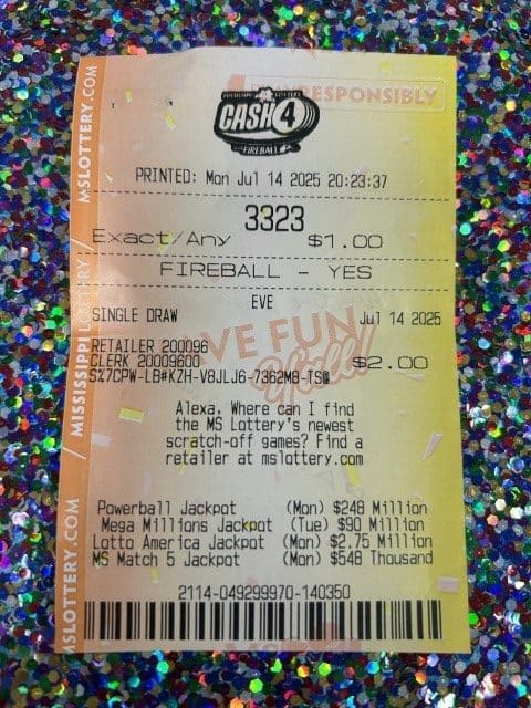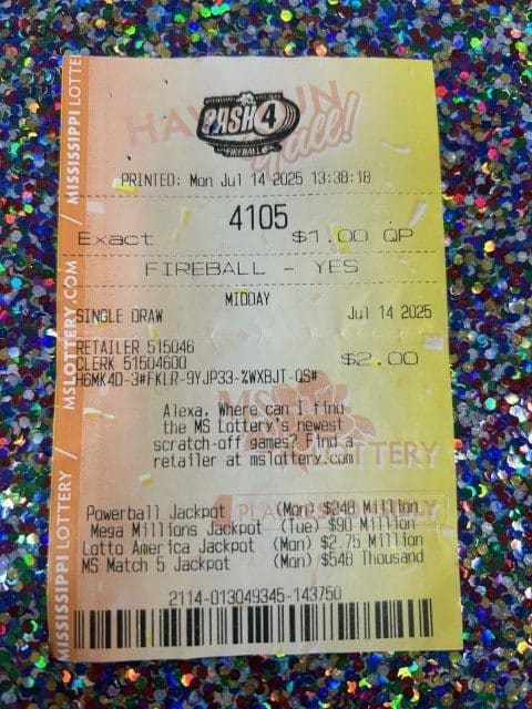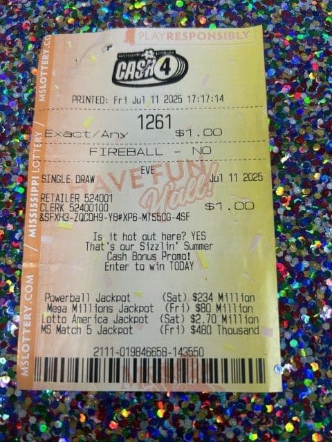A Mobile, AL player won $2,500 on a Cash Pop ticket from Quick Save in Hattiesburg.