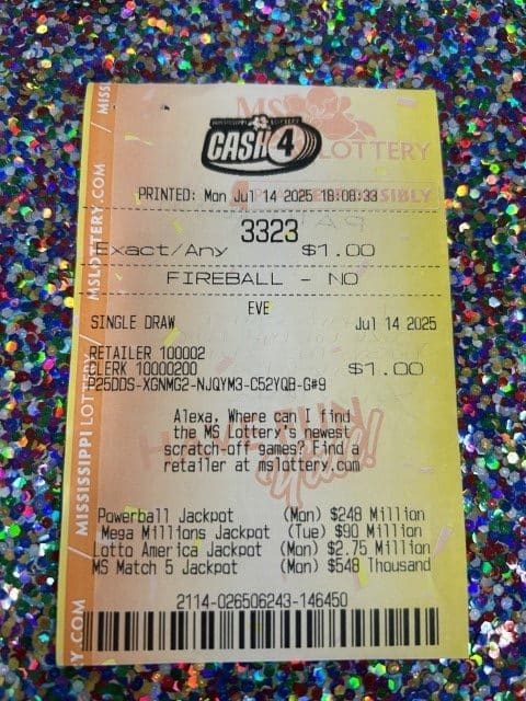 A Long Beach man won $2,700 on a Cash 4 ticket from Keith’s Superstore #109 in Pass Christian.
