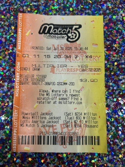 A Bogue Chitto man won $2,000 on a $10 scratch-off ticket from City Mart #1 in Brookhaven.