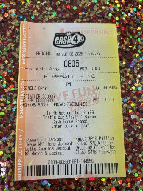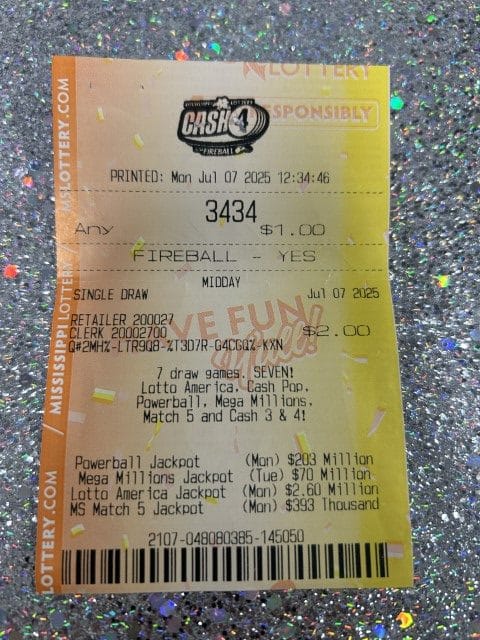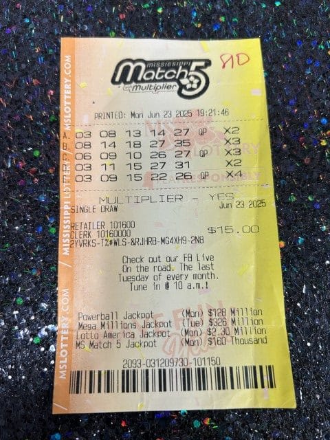 A Columbia player won $1,000 on a Cash Pop ticket from Circle K Store #2723399 in Hattiesburg.
