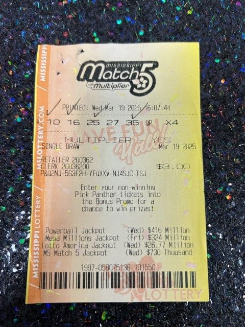 An Ocean Springs man won $1,000 on a Match 5 ticket from Clark Oil Company 32 in Ocean Springs.