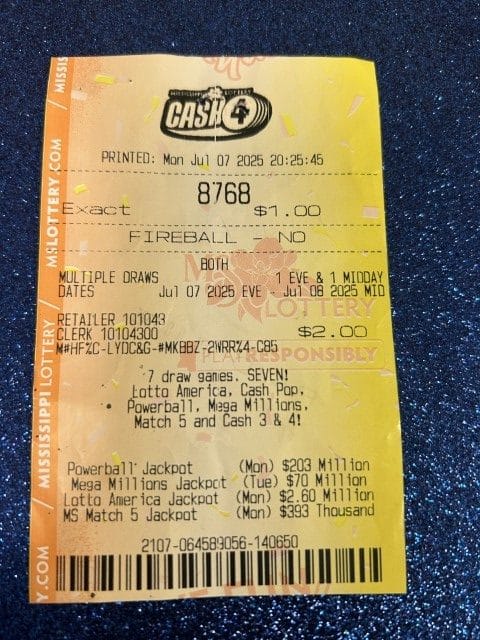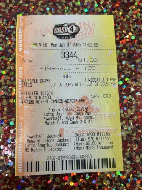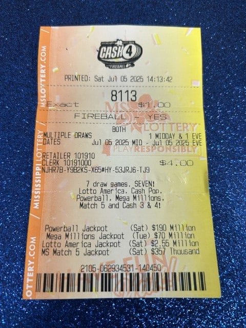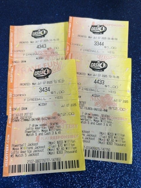 A Lumberton man won $20,000 on four Cash 4 tickets from Ramey’s in Purvis and Keith’s Superstore #185 in Lumberton.