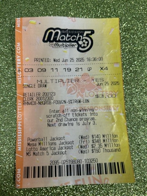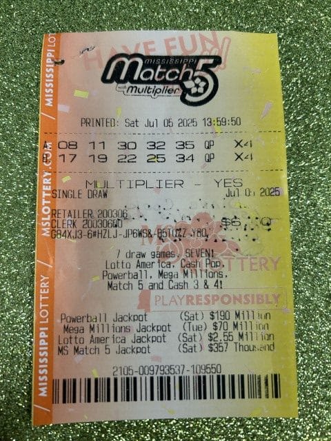 A Pascagoula man won $1,000 on a Match 5 ticket from The Oaks in Moss Point.
