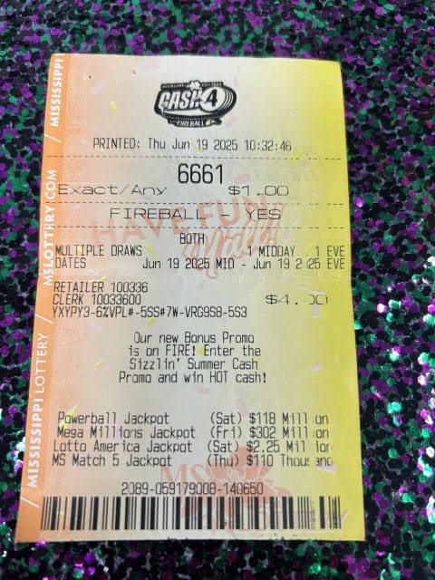 A Hazlehurst man won $7,600 on two Cash 4 tickets from Sweet Pea’s #76 in Hazlehurst.