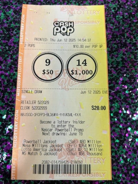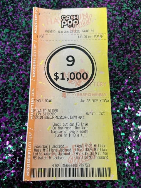A Bay Springs man won $1,000 on a Cash Pop ticket from Keith’s Superstore #117 in Bay Springs.