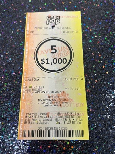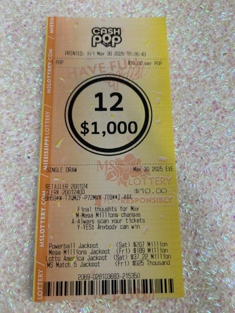 A Bay Springs man won $1,000 on a Cash Pop ticket from Keith’s Superstore #117 in Bay Springs.