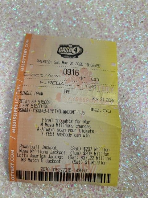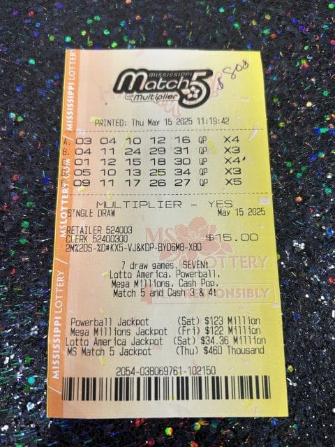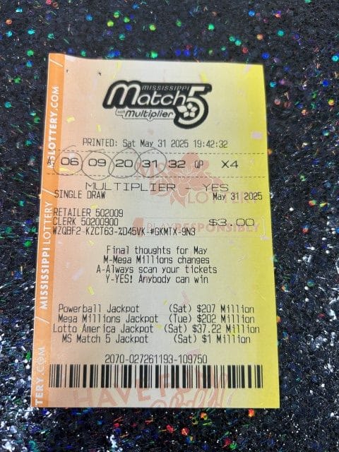 A Jayess man won $840 on a Match 5 ticket from Mr.tee’s Countryside Groceries in Summit.