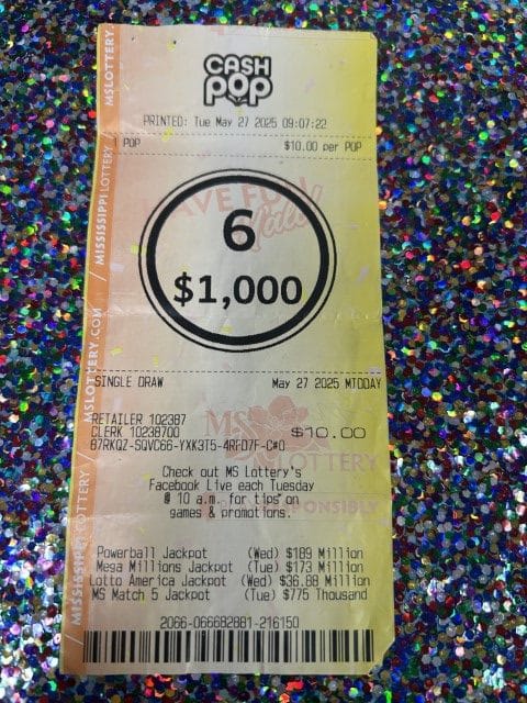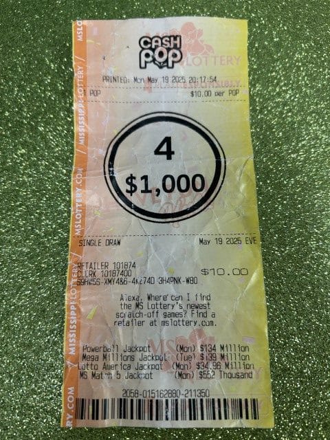 A Biloxi man won $1,000 on a $20 scratch-off ticket from Walmart Fuel Station #4586 in Biloxi.
