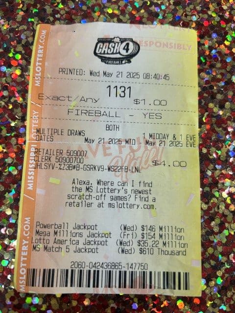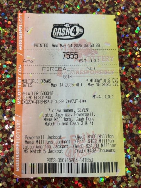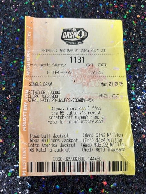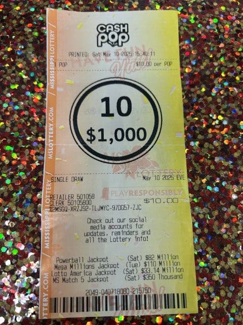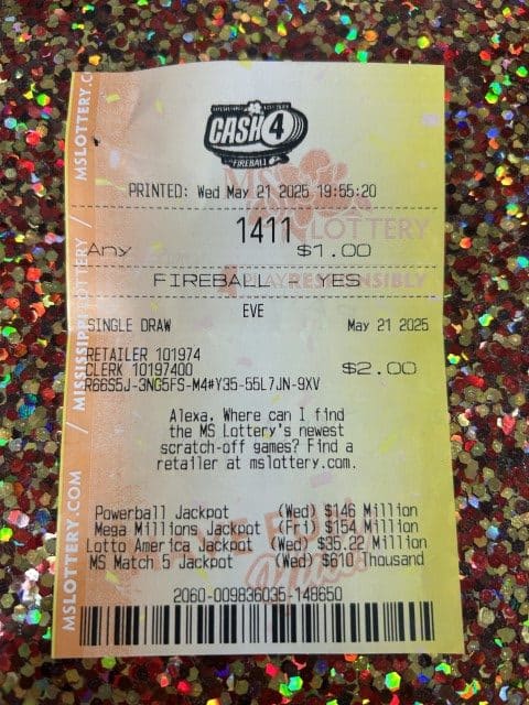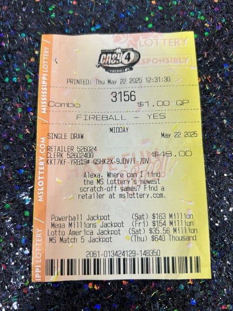 A Hattiesburg man won $2,600 on a Cash 4 ticket from South Pointe Express Mart in Hattiesburg.