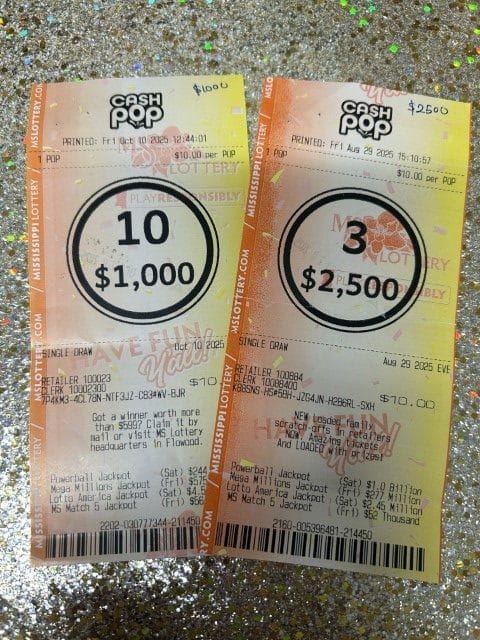 A Saltillo man won $3,500 on two Cash Pop tickets from P K SUPER C and North Auburn Grocery in Tupelo.