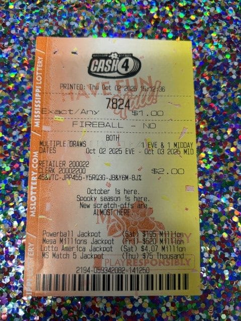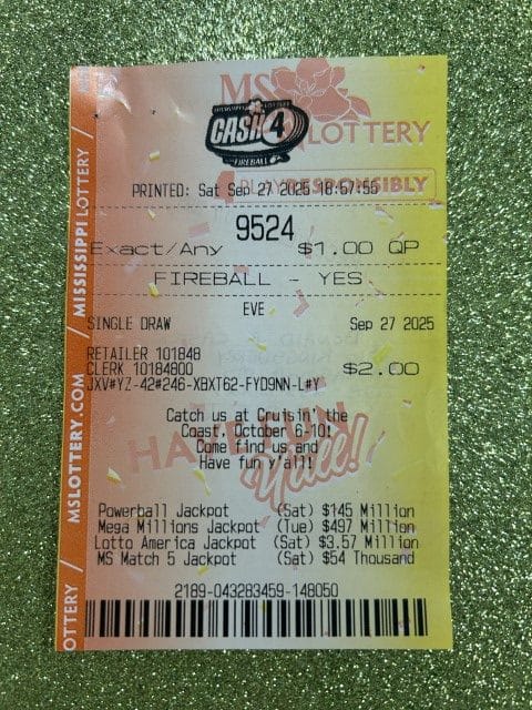A Moss Point man won $2,600 on a Cash 4 ticket from Wayne Lee’s Grocery And Market in Pascagoula.