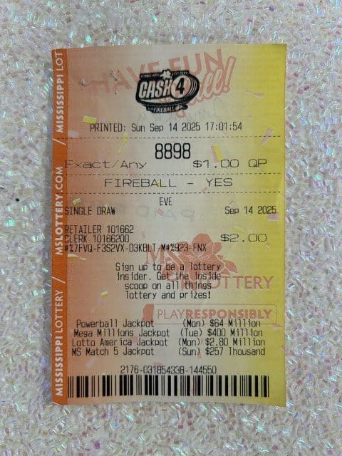 A Hattiesburg man won $2,600 on a Cash 4 ticket from Finish Line in Hattiesburg.