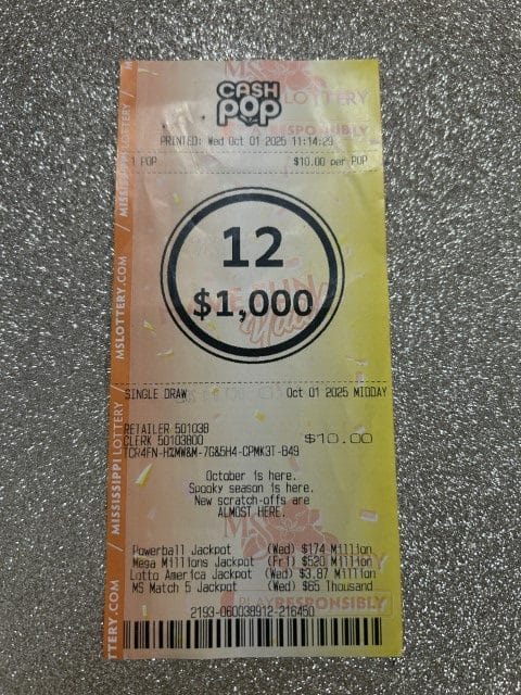 A Pearl man won $1,000 on a Cash Pop ticket from Sprint Mart #119 in Jackson.