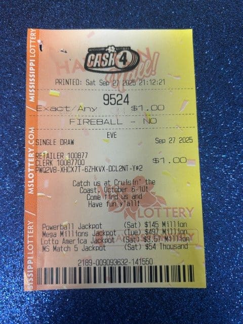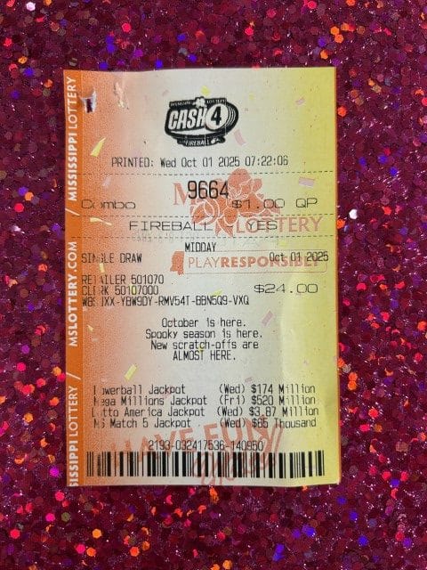 A Hattiesburg man won $2,600 on a Cash 4 ticket from Murphy Oil Usa #8503 in Petal.