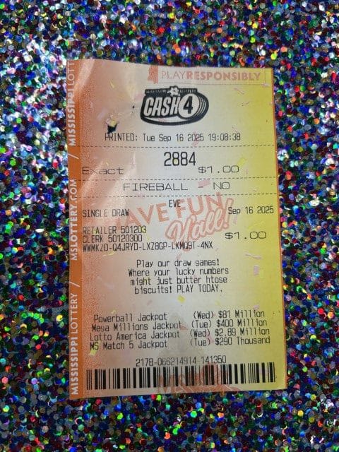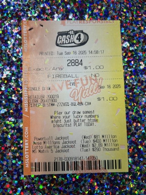 A Prentiss man won $2,500 on a Cash 4 ticket from Taylorsville Chevron in Taylorsville.