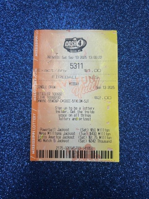 A Toomsuba man won $5,000 on a Cash 4 ticket from Shell Food Mart #12 in Meridian.