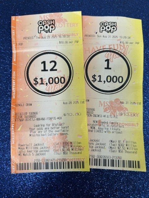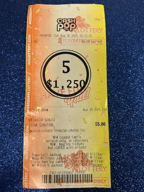 A Water Valley man won $1,250 on a Cash Pop ticket from Sprint Mart #48 in Water Valley.