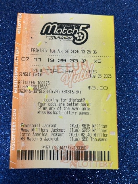 A Wilmer, AL woman won $1,000 on a Match 5 ticket from Town & Country in Lucedale.