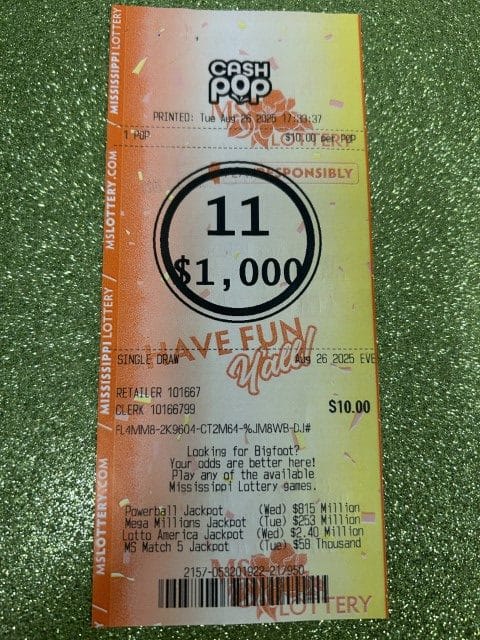 A Mobile, AL woman won $1,000 on a Cash Pop ticket from Miss Al Market in Moss Point.