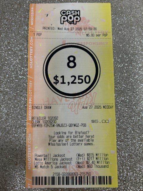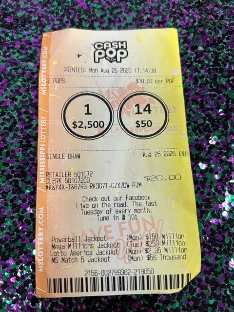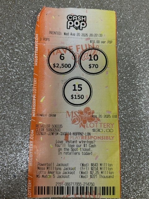 A Jayess man won $2,500 on a Cash Pop ticket from Jayess General Store in Jayess.