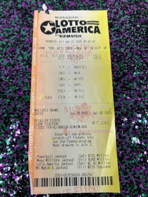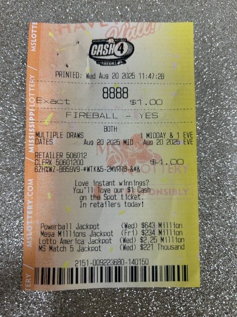 A Hattiesburg woman won $4,000 on a Lotto America ticket from Dandy Dan’s #526 in Hattiesburg.