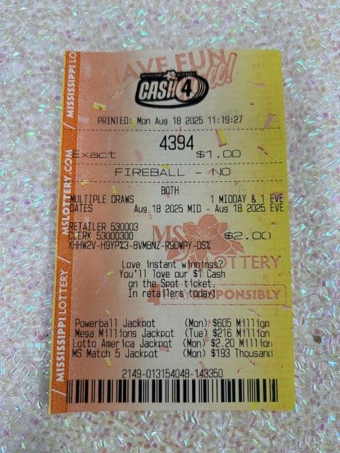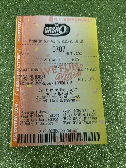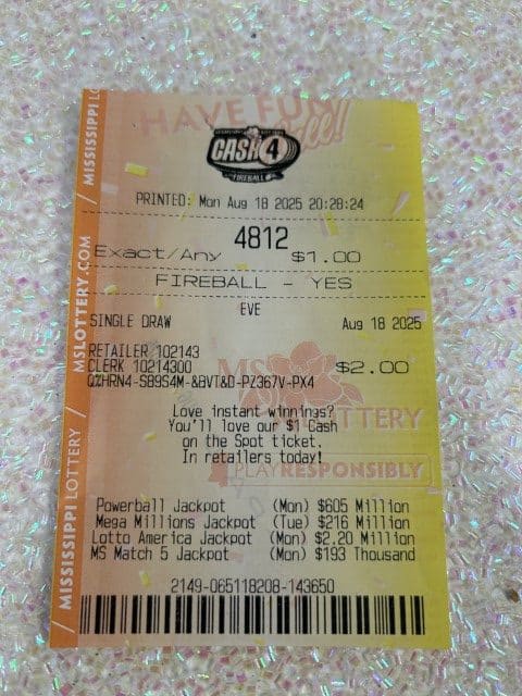 A Hattiesburg man won $800 on a Cash 4 ticket from Finish Line in Hattiesburg.