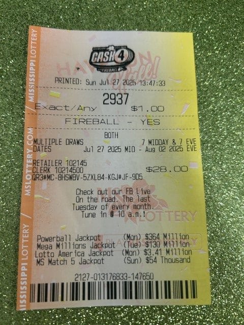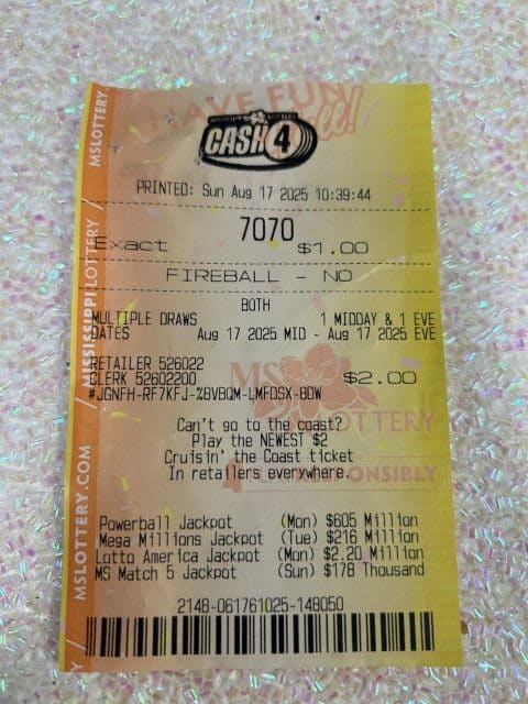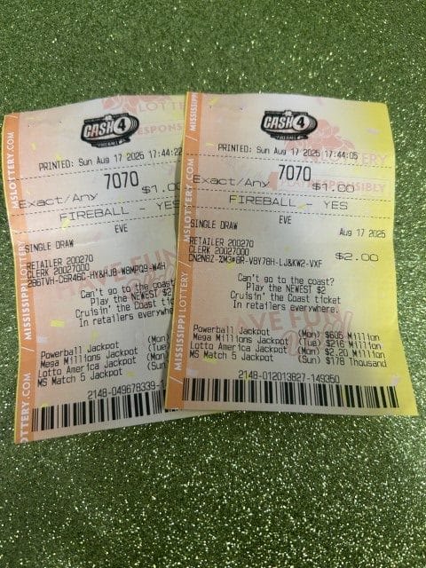 A Hazlehurst man won $10,000 on two Cash 4 tickets from Sweet Pes’s 76 in Hazlehurst.