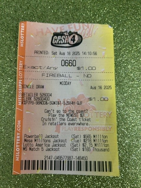 A Vicksburg man won $2,500 on a Cash 4 ticket from Exxon Jubilee in Vicksburg.