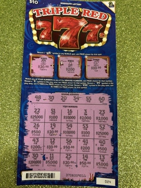 A Starkville woman won $2,500 on a $5 scratch-off ticket from Sprint Mart #4126 in Starkville.