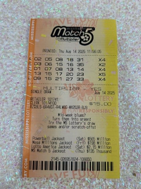 A Reform, AL player won $2,600 on a Cash 4 ticket from Jimmys Mini Mart in Toomsuba.